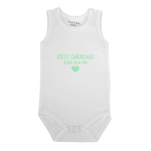 | Op dit witte rompertje staat de tekst ‘hoezo sinterklaas?’. Het rompertje is super leuk om als cadeautje te geven. Geef aan in welke kleur je de tekst wilt, en wij bedrukken het rompertje voor je. |